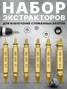 Набор экстракторов / экстрактор для извлечения сломанных болтов и сорванных шурупов