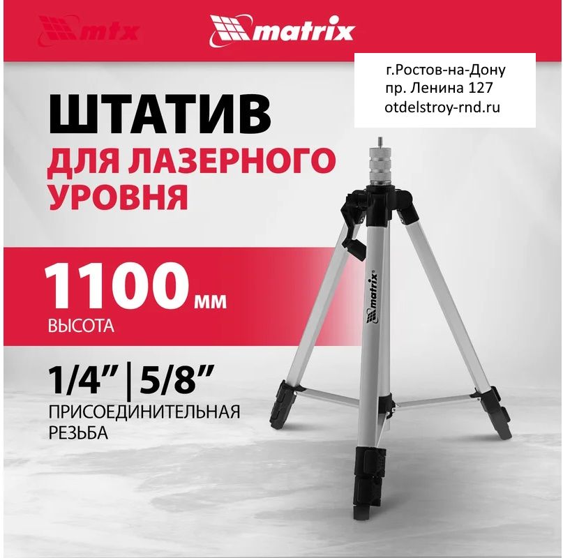 Штатив для лазерного уровня 1100 мм, адаптер 5/8"-1/4
