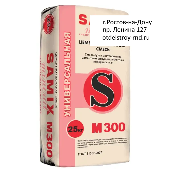 Смесь цементно-песчаная Samix предназначена для укладки кирпича, строительных блоков, декоративных элементов. Используется для заполнения трещин и заделки швов. При соединении с водой в нужной пропорции образует пластичную, простую в применении смесь. Затвердевая, формирует монолитный, прочный и устойчивый к любым негативным факторам слой.